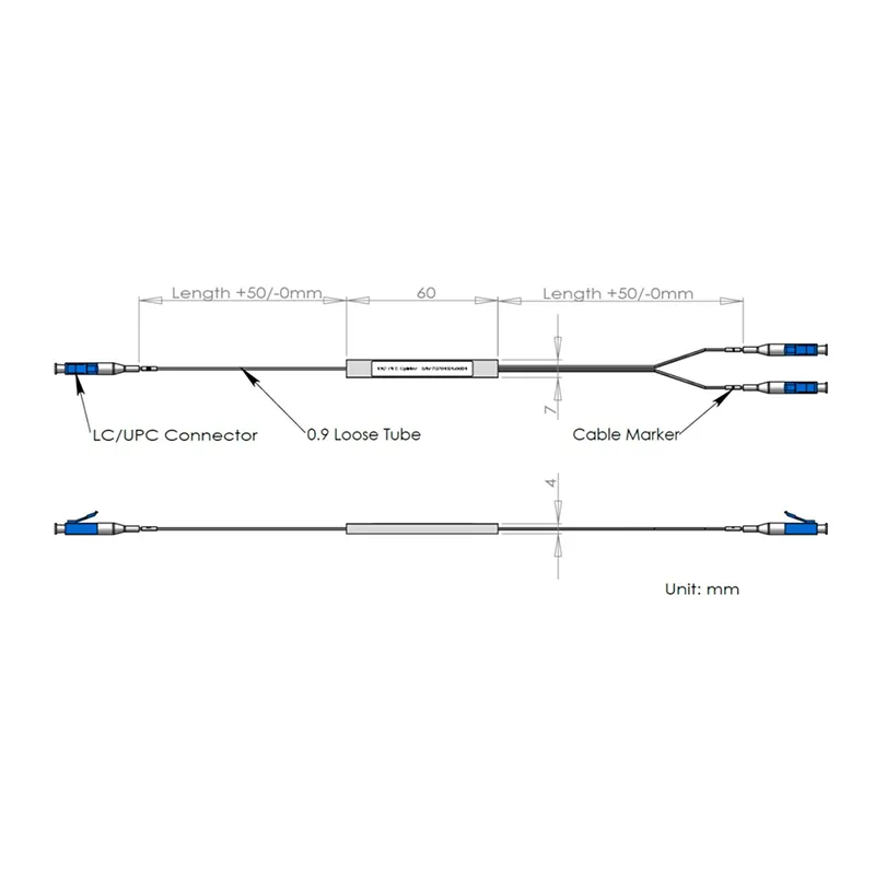 Pacchetto tubo in acciaio splitter 1 × 2 PLC 60x7x4mm, con lunghezza del tubo allentata 900μm da 1,0 m, connettore LC/UPC.Specifiche delle prestazioni:ParametriSimboloSpecificheUnitàNumero del canaleCap1 × 2Lunghezza d'onda dell'operazione1260 ~ 1650nmTest lunghezza d'onda......