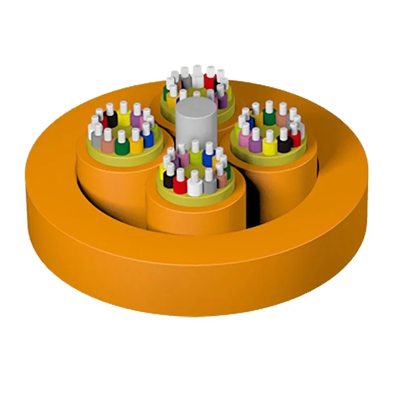 Il cavo in fibra ottica di distribuzione multiuso (≥24f) utilizza sotto-unità multi-core (φ900μm fibra ottica a taglio a bassa, elementi di rinforzo aramidico), core di rinforzo centrale non metallico, core a spiga o pvC) La guaina del materiale (LSZH, a bassa figura, senza alogeni, a fiamma-retardante) viene estruso all'esterno.